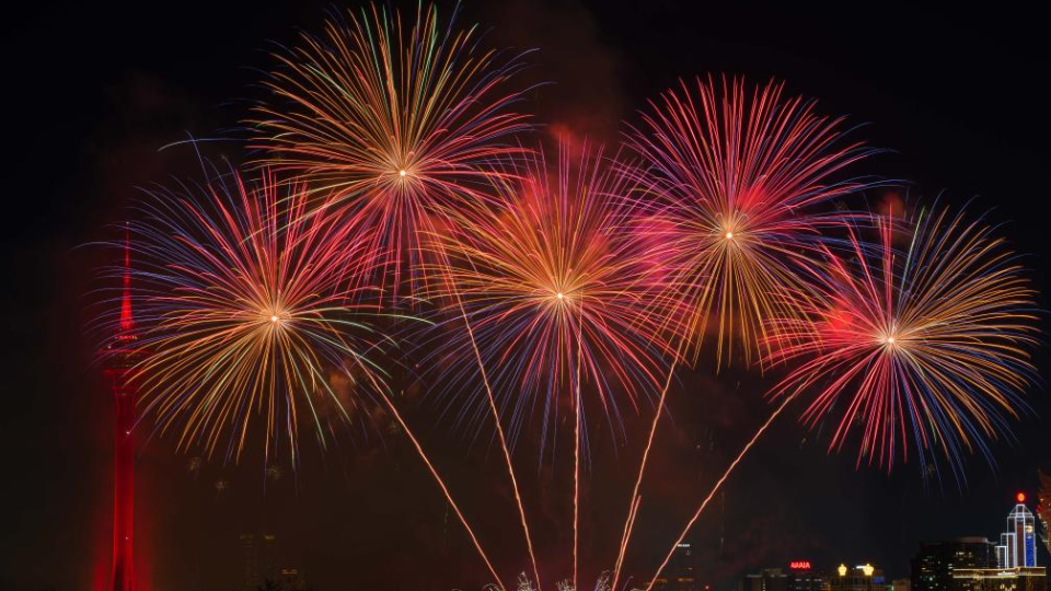Fireworks illuminate the sky during an international fireworks display contest in Macao, south China, Oct. 1, 2025.