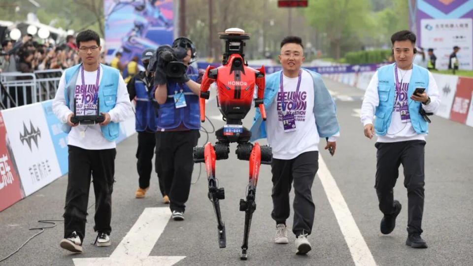 视频|绝了!北京亦庄机器人半程马拉松,有可爱的“小不点”,更有“假摔哥