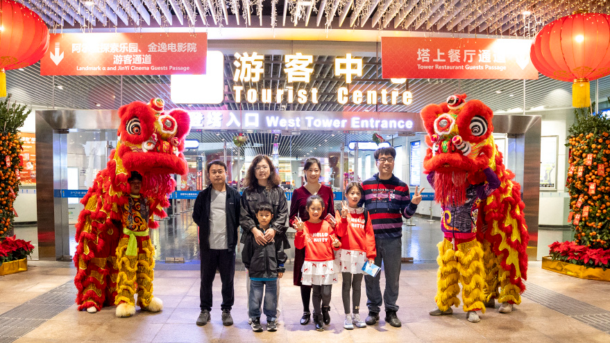 醒狮少年带市民游客走进非遗里的中国年