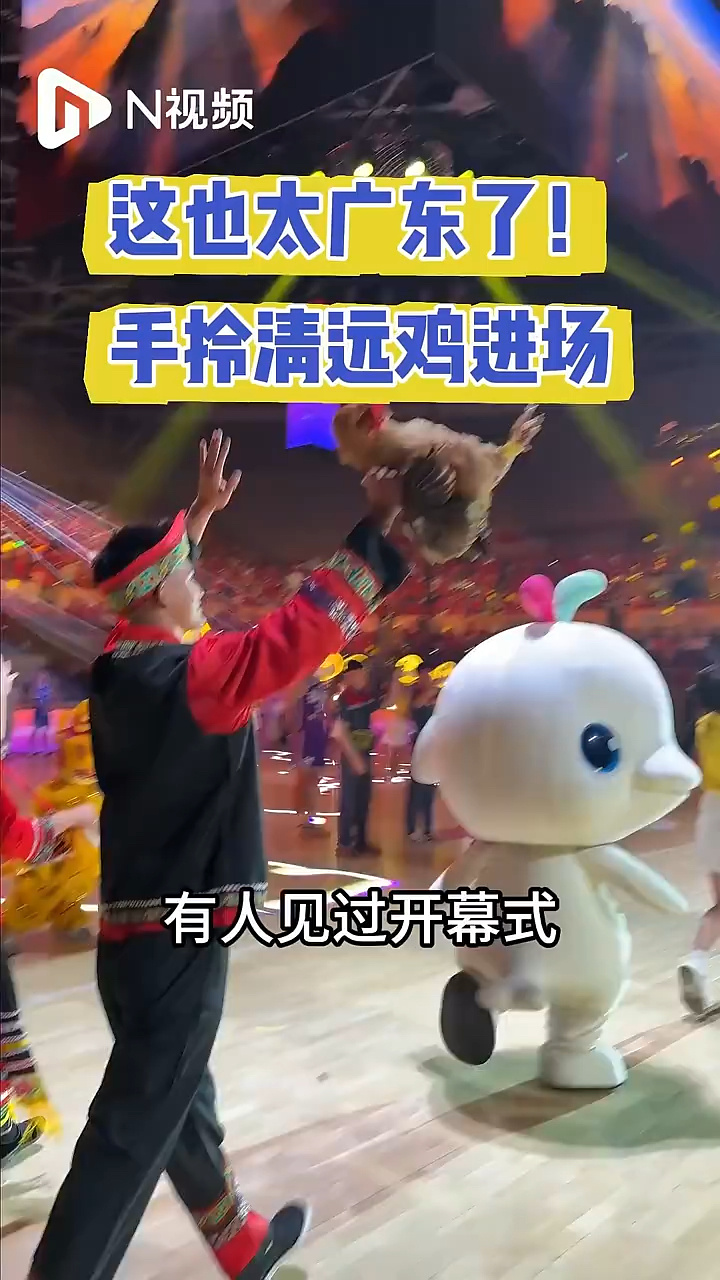 粤BA开幕式太广东了 手拎清远鸡进场 还有隆江猪脚饭、陈皮、菠萝、功夫茶……