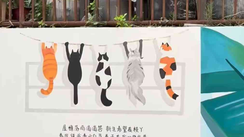 广州海珠晓港创意墙绘上新啦,墙绘猫猫好得意